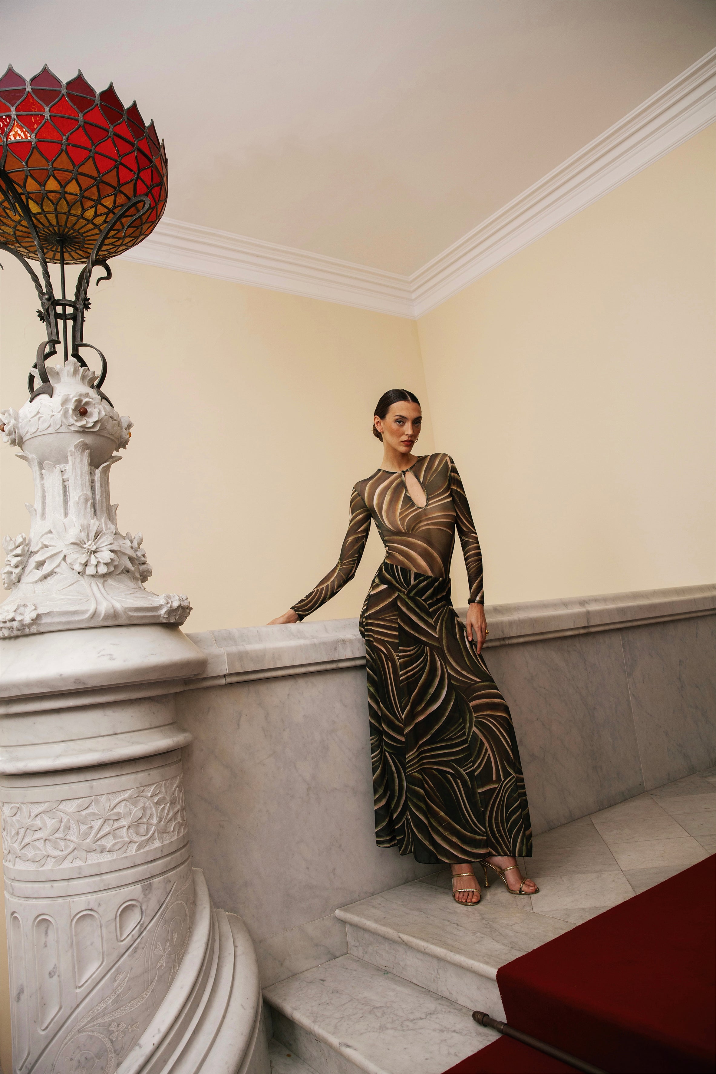 Flowy, semi-sheer chiffon skirt with allover amazona print. Pairs perfectly with the matching bodysuit.